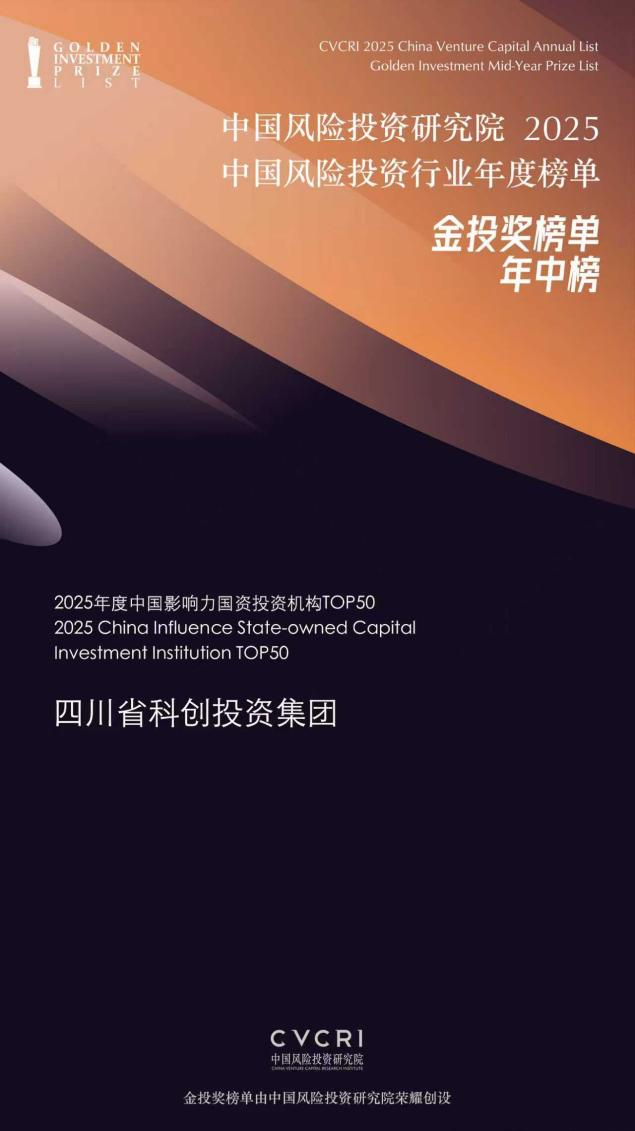 荣誉 | 四川省科创投资集团蝉联荣登CVCRI金投奖•2025中国风险投资行业年中榜
