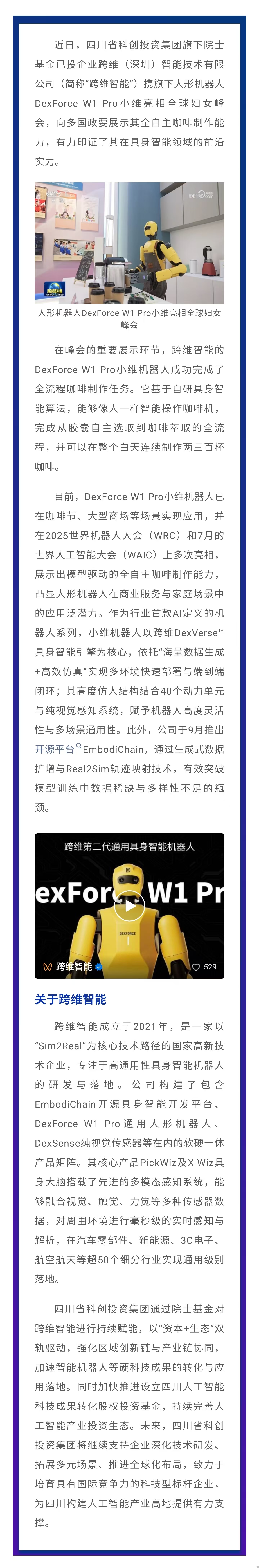 已投企业动态 | 跨维智能人形机器人亮相全球妇女峰会