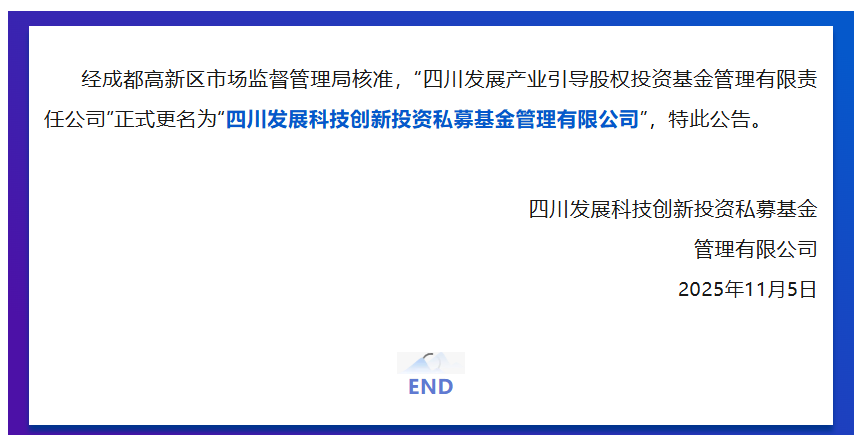 关于四川发展产业引导股权投资基金管理有限责任公司更名的公告